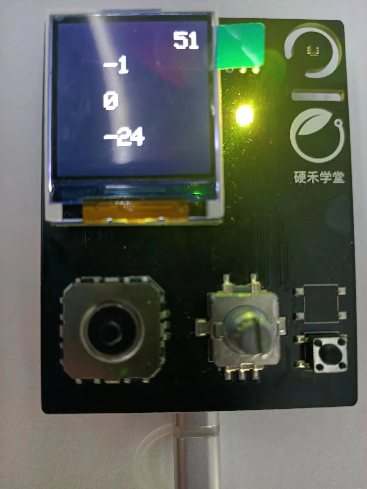 6.2 定义变量 6.3 实例化 6.4 TFT屏初始化 6.5 配置3轴传感器MMA7660 6.6 读取传感器数据 6.7 TFT屏显示加速度传感器数值 6.8 根据加速度传感器值,切换彩灯颜色 6.9 静置30秒周期性彩灯颜色变换 7 运行效果 程序运行效果如下图所示: 1、屏幕加速度显示传感器数据 2、板子转到不同方位彩灯颜色跟随变化 3、静置30秒后,彩灯呈现周期变化 |