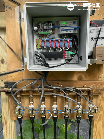 创客Will Cogley受到人体解剖结构的启发,结合了机械领域常用的“斯图尔特(Stewart)平台”原理,用六个微型线性执行器(类似肌肉)实现了脖子的六自由度运动,让机器人头部能像人类一样做出自然、流畅的动作。 项目的亮点在于,不仅仅是机械结构的创新,还巧妙地用3D打印技术制作了仿生脊椎,把硬质“骨骼”和柔性“软盘”结合,既保证了脖子的稳定性,又保持了灵活性。通过Python编程和逆运动学算法,机器人可以根据设定的目标位置自动调整“肌肉”动作。这种设计为未来更复杂、更逼真的机器人开发打下了坚实基础。 来源: 太阳能自给的智能花园灌溉系统这个项目是一套完全离网的太阳能智能灌溉系统,专为花园自动浇水而设计。