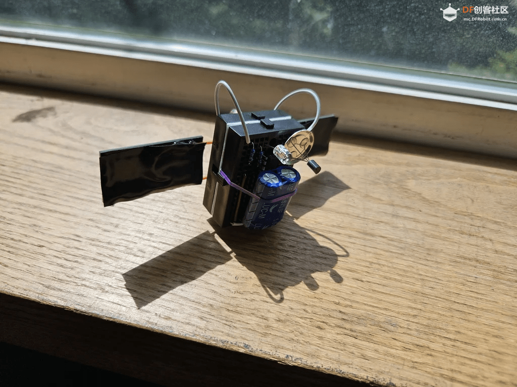 来源: 太阳能“卫星”面包板灯——BreadSatBreadSat 是一个外观酷似卫星的创客小项目,它利用面包板搭建了一个由太阳能供电、能自动闪烁LED灯的电路。通过太阳能电池板为超级电容充电,白天吸收能量,晚上则能持续供电让LED灯交替双闪,模拟太空卫星的闪烁效果。
