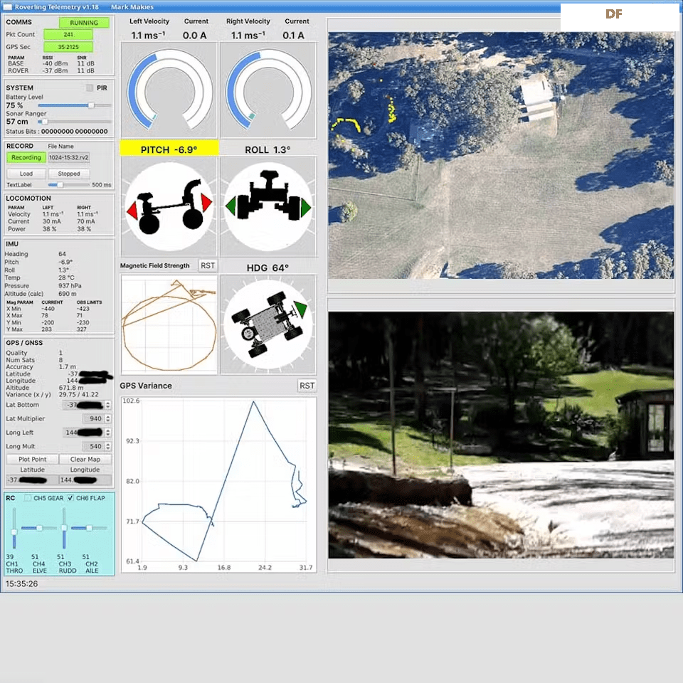 Roverling Mk II 配备了丰富的传感器和模块,包括GNSS定位、IMU惯性测量单元、无线遥控、驱动电机、声呐测距、LoRa远程通信以及树莓派4等,能够胜任复杂环境下的探索任务。