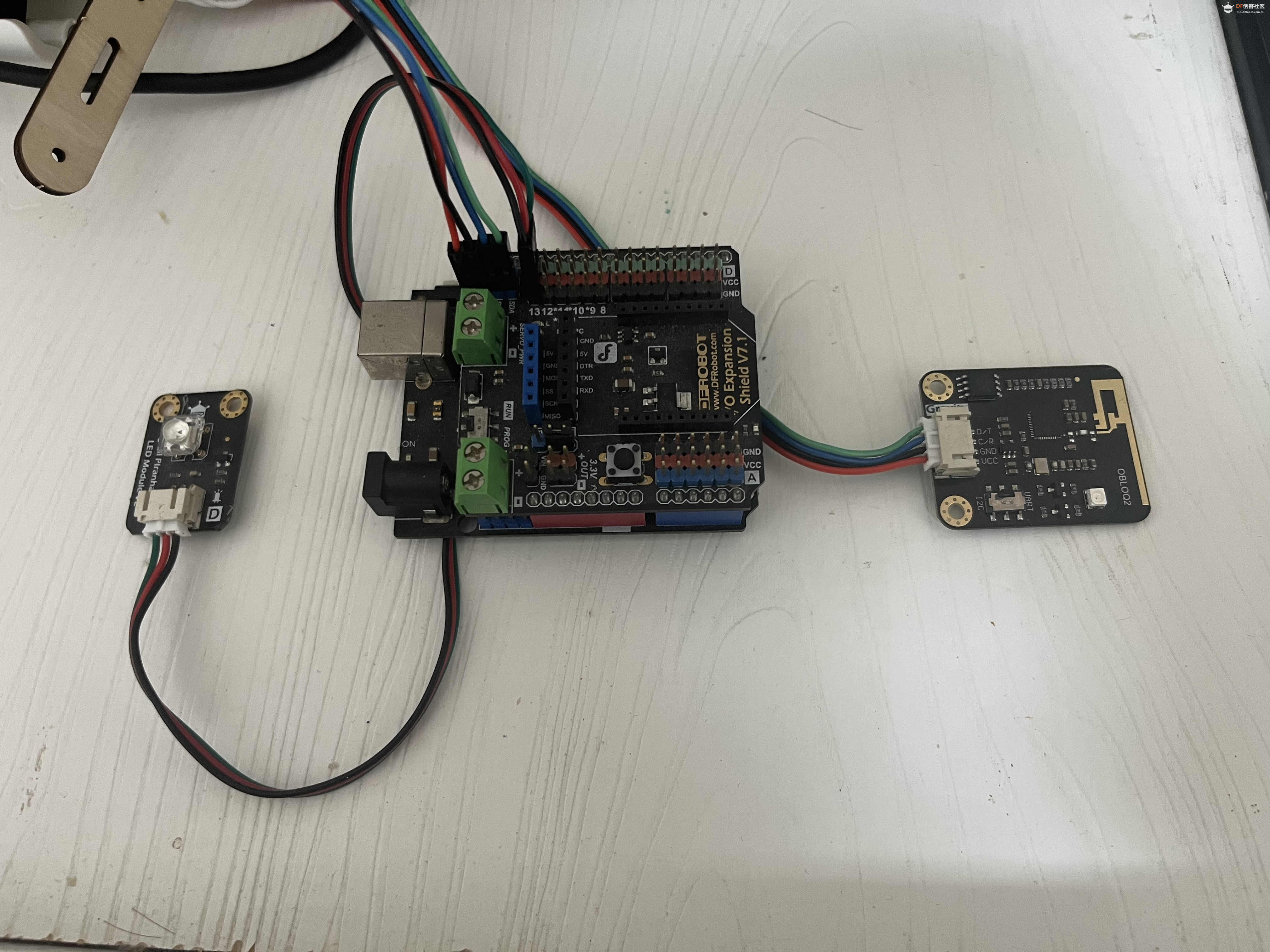 | 模块拨到UART(绿线接UNO的RX,蓝线接UNO的TX) | 模块拨到UART(绿线接2号,蓝线接12号) | 模块拨到I2C(接I2C引脚) |