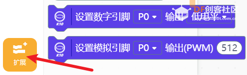 step1:硬件搭建 按钮接行空板K10的P0接口,然后通过数据线直连电脑。 step2:程序编写 mind+左下角点击扩展